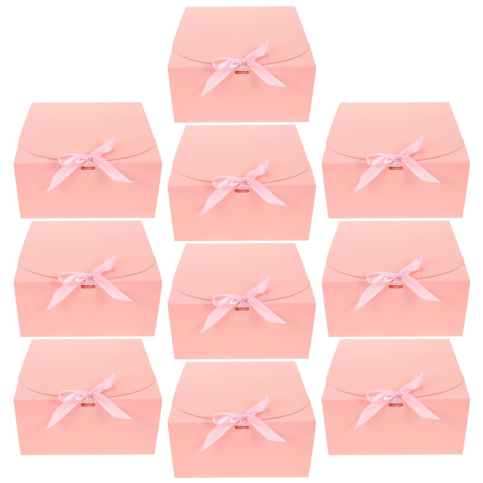 Wedding Dessert Box Square Pink Paper Packaging for Cakes Breads Pastries 10Pcs