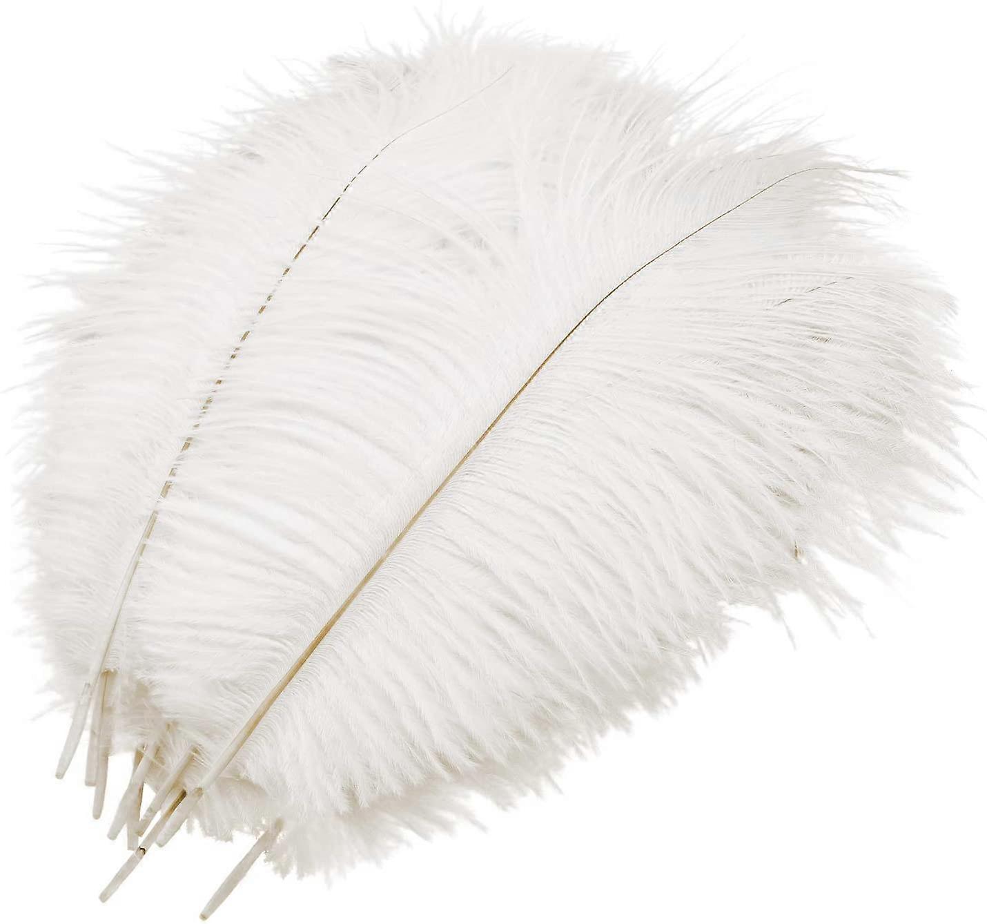 Wedding Party Decor, Ostrich Feathers For Elegant Table Centerpieces And Themed Party Accents, 10Pcs White Feathers 25-30Cm Long, Varied Sizes And