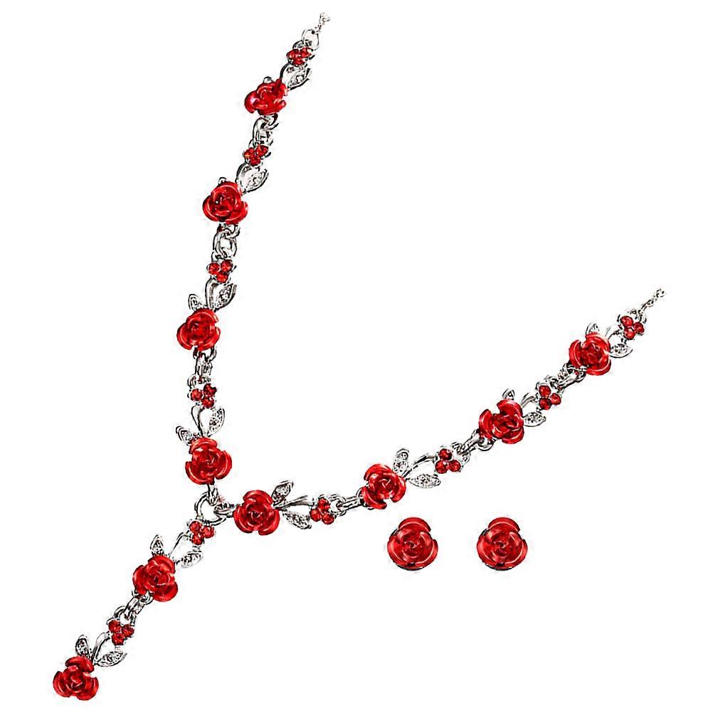 Red Rose Necklace and earrings Set for Women Made of Alloy Perfect for Wedding Parties and Decorations