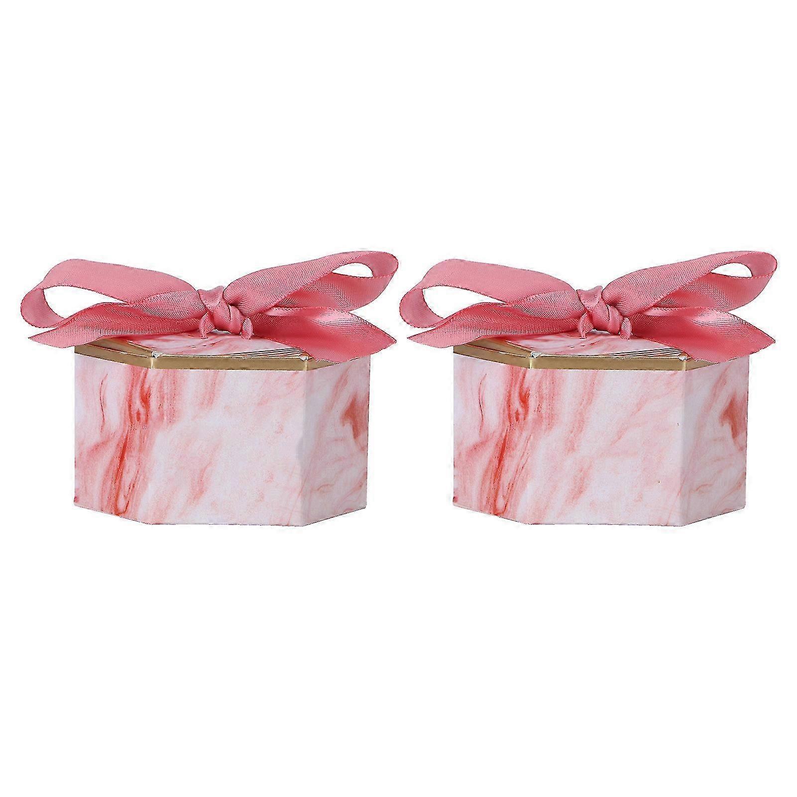 Hexagonal Candy Boxes Set for Wedding Party Supplies - 25 Pink Rose Chocolate Cookie Boxes with Ribbons