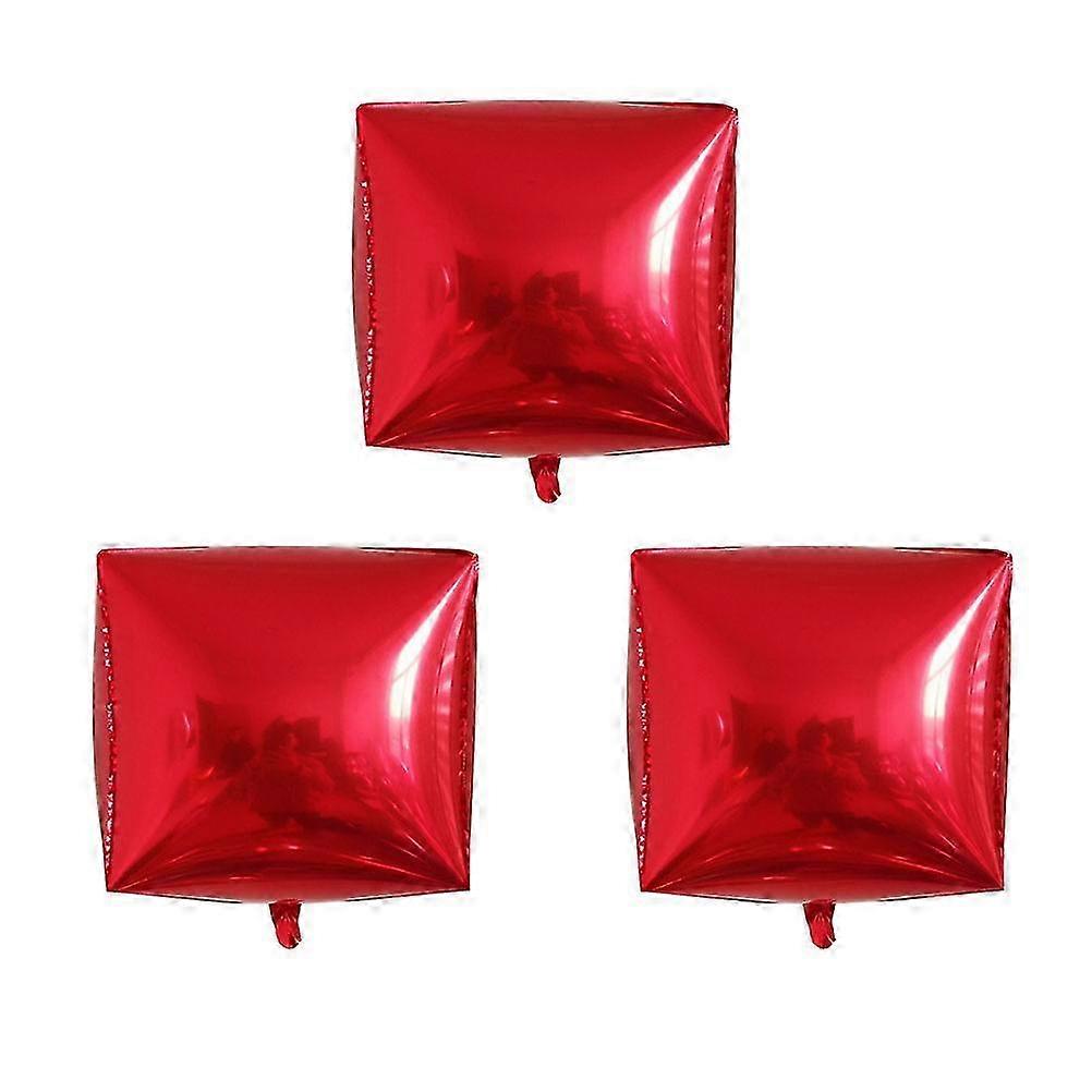Set of 3 Red 4D Square Aluminum Foil Balloons for Wedding Party Supplies and Birthday Celebrations