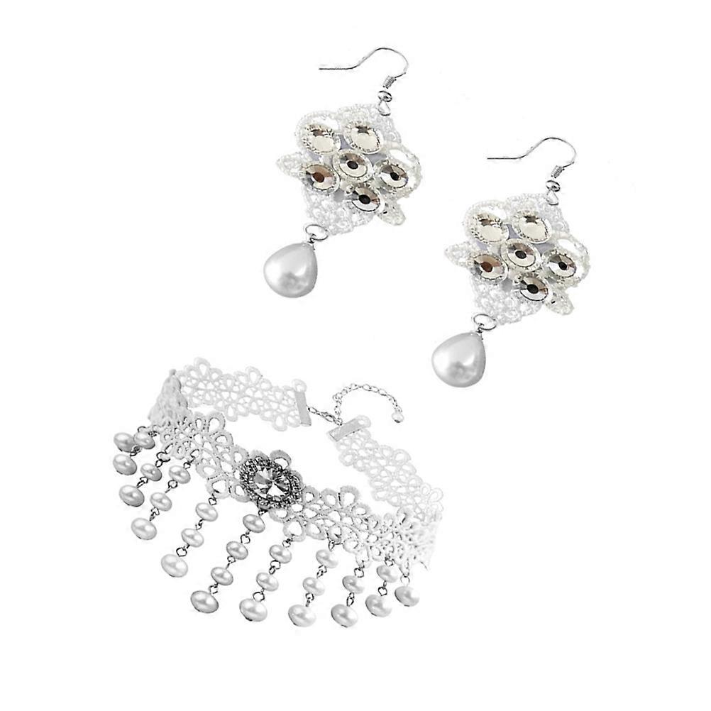 Elegant Pearl Necklace and Earring Set for Women in Silver Perfect for Wedding Bridal Accessories 1 Set
