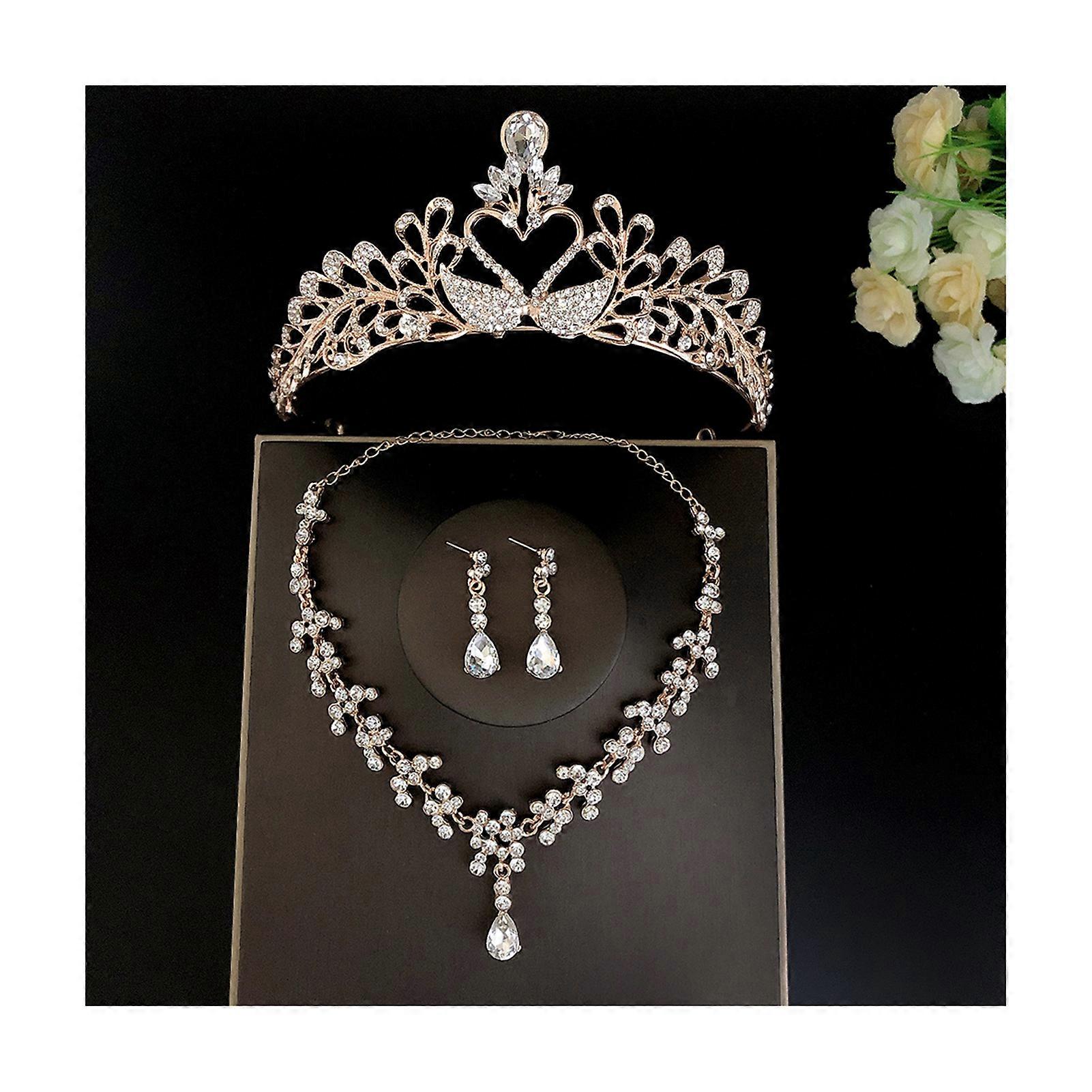 Wedding Bridal Tiaras Crown Set with Earring Kit & Necklack Handmade Luxury Crystal Hair Accessories for Party Prom New Silver