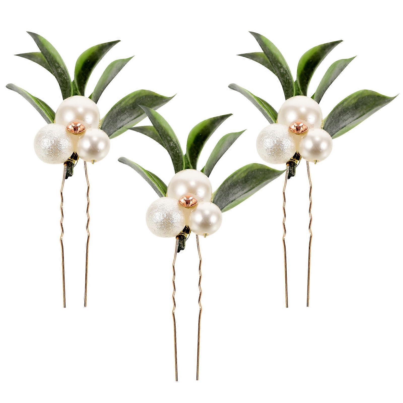 Wedding Hair Accessories Green Imitation Leaf Pearl Hair Ornaments Photo Studio U Shape Design Durable 3Pcs