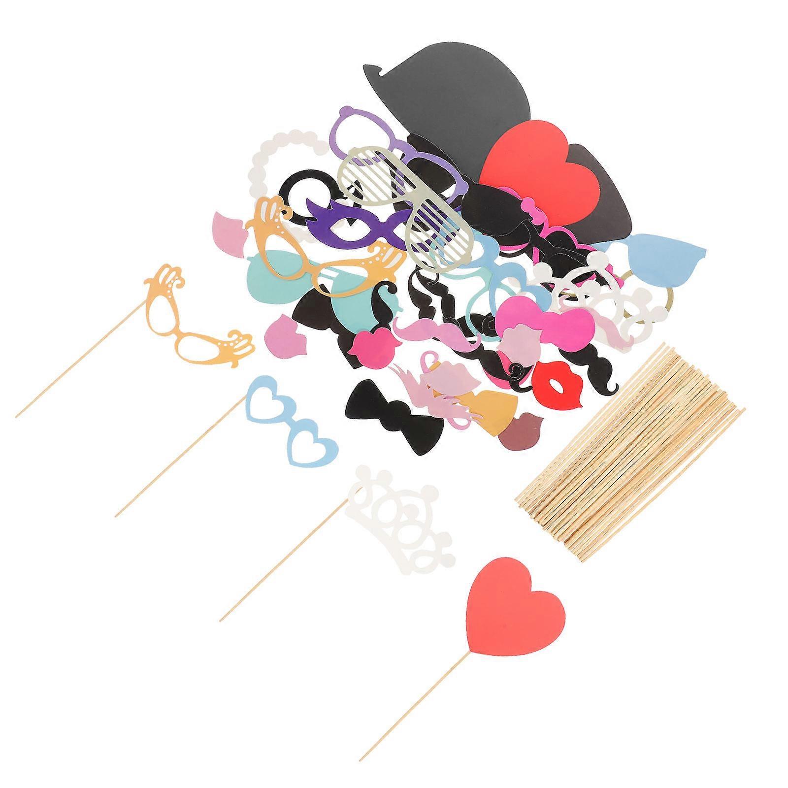 Wedding Photo Prop 44-in-1 DIY Glasses Moustache Red Lips Bow Ties Hats On Sticks Family Reunion Photo Booth Props Cardstock 1Set