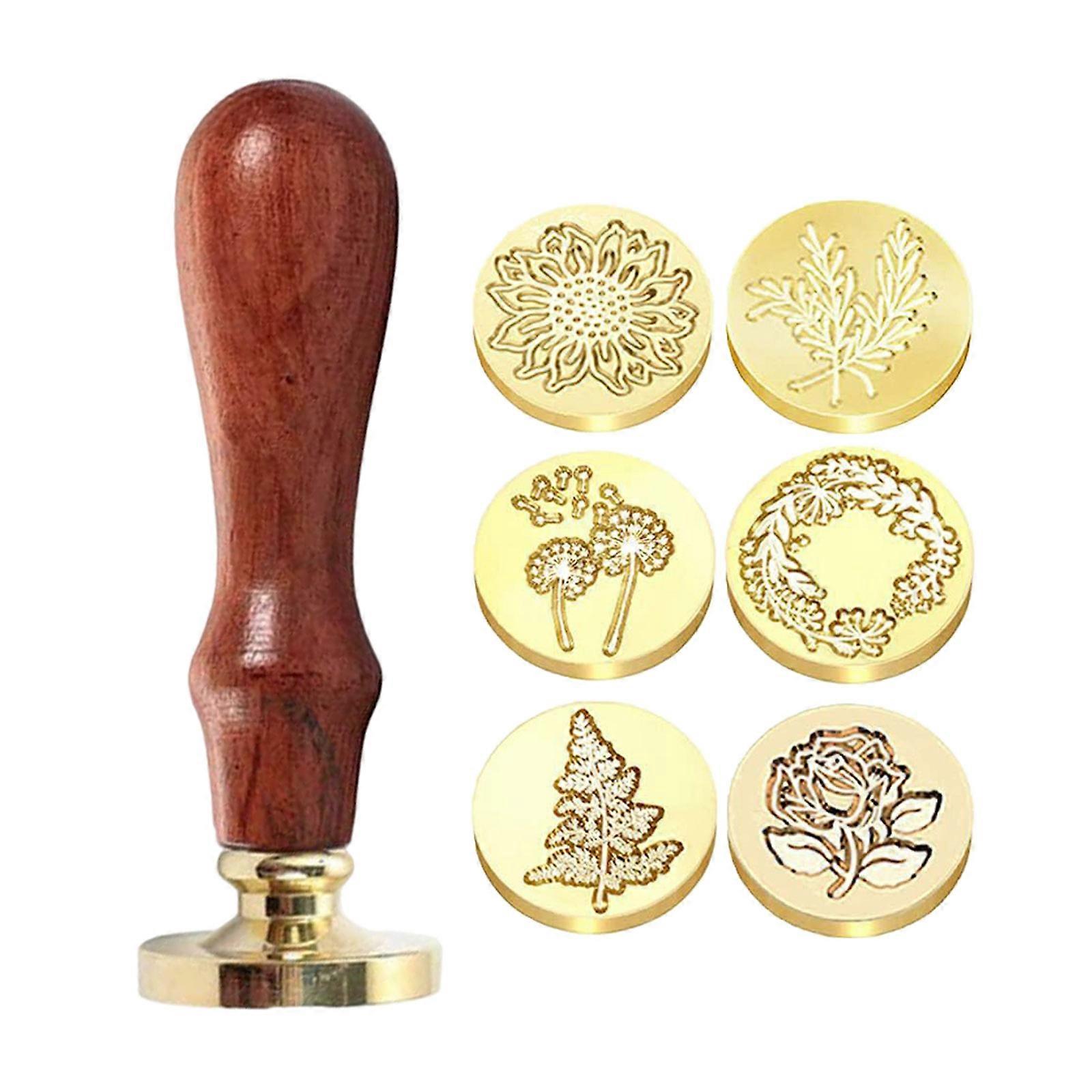 6Pcs Flower Sealing Stamp Handle with Wood Handle for Wedding Invitations Thanksgiving Card Envelope Decorations