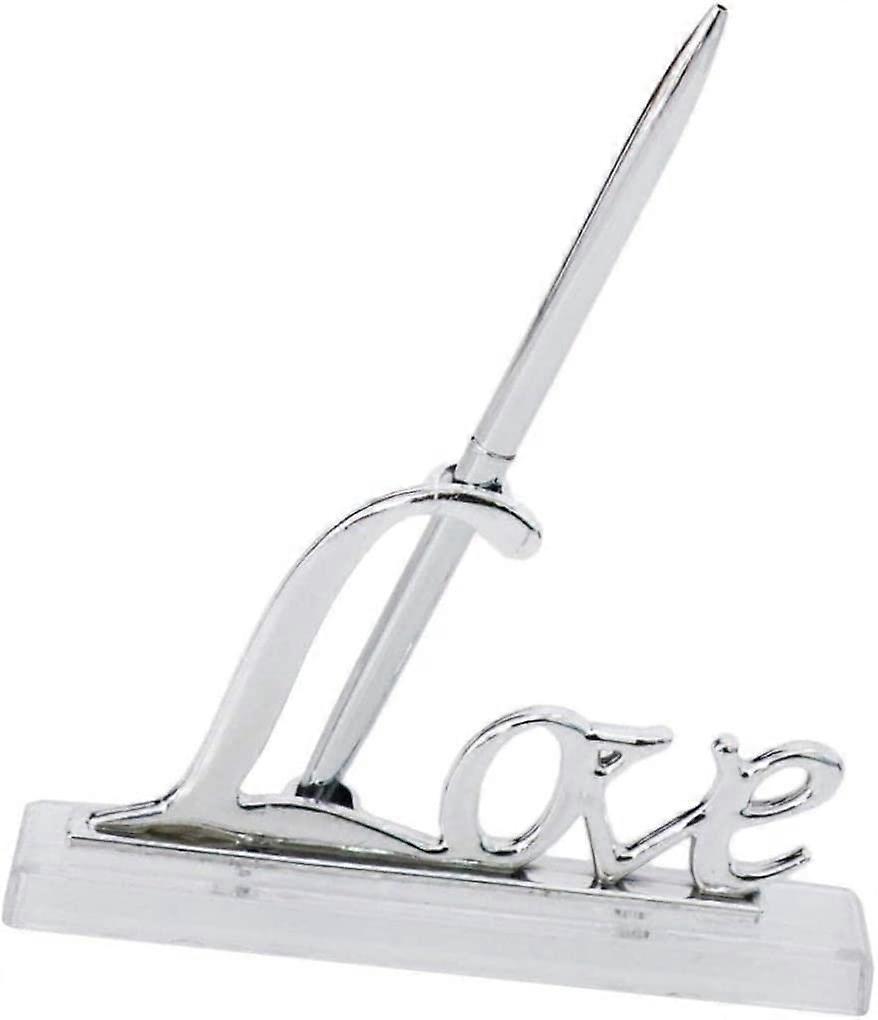 Wedding Signing Pen Set Exquisite Love Pen Stand Durable Guest Book Signing Pen Luxury Plated Love Holder Love Sign to Pen Markers & Highlighters (sil