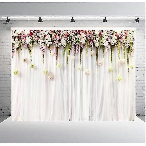 Wedding Flower Wall Backdrop Polyester Fabric Pink Bride Brick Floral Romantic Rose Plant Elegant 7bx5h