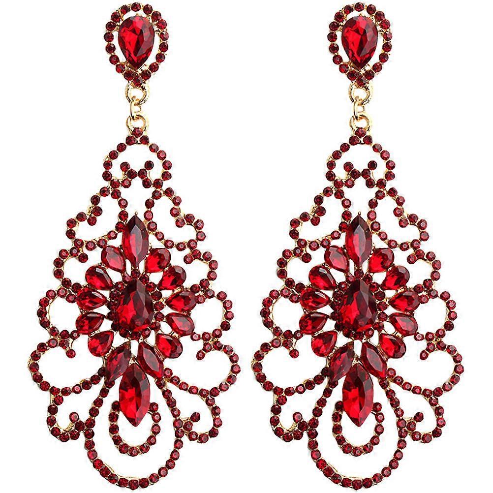Red Bridal Earrings with Rhinestones for Women Perfect for Weddings and Parties Alloy