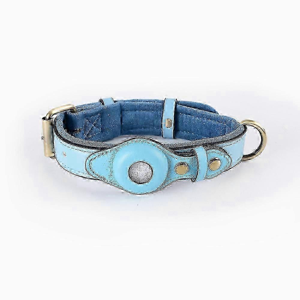 Leather dog collar with integrated slot, for large to extra large dog breeds, adjustable, whale blue