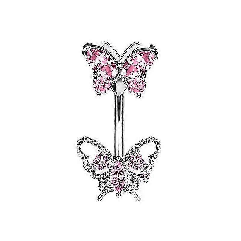 Exquisite Stainless Steel Pink Zircon Butterfly Navel Ring Sexy Body Jewelry For Women Girls Fashion Belly Button Rings Gifts