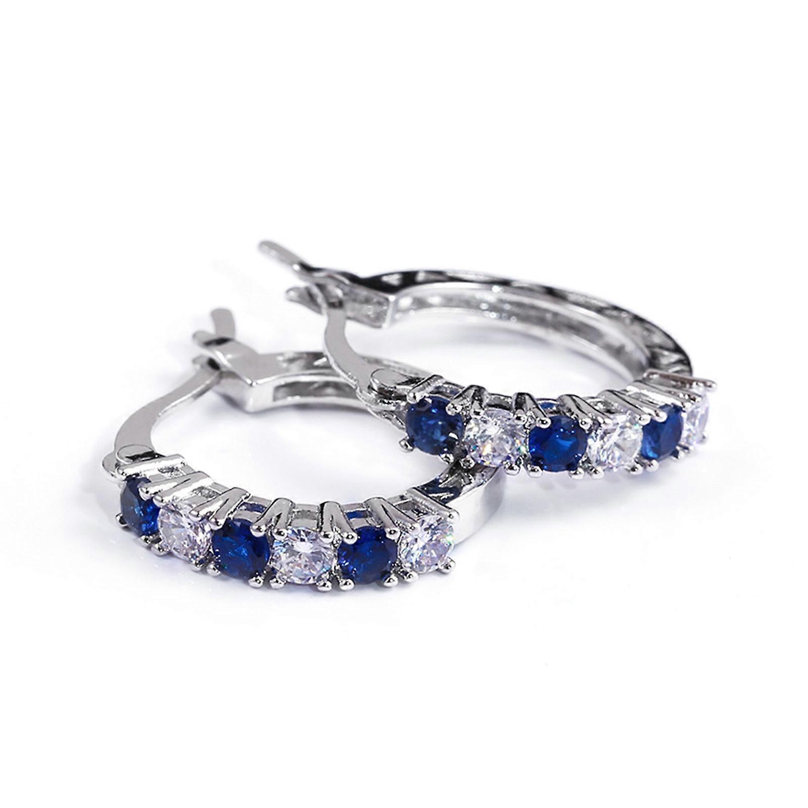 Exquisite Hoop Earrings Round Blue Sapphire and White for Rhinestone Dainty Hoop Earrings for Women Photo Shooting