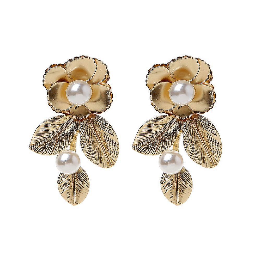 Exquisite Royal Earrings Gold Tone Baroque Pearl Leaf Flower Earrings Wedding Bridal Jewelry Decor Earring Posts Gifts Multicolor