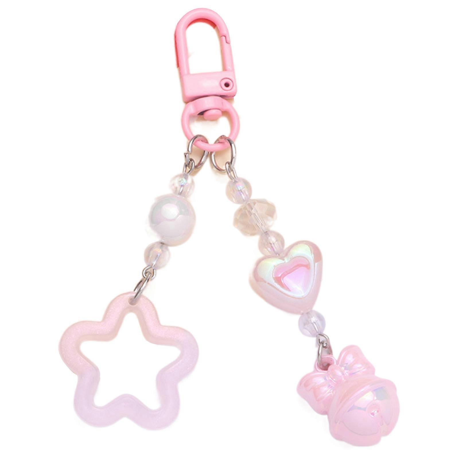 Fashion Hollow Five Pointed Star Keychain Beautiful Bell Heart Charm Keychain Daily Use Handbag Lanyard Charm Keyring Pink