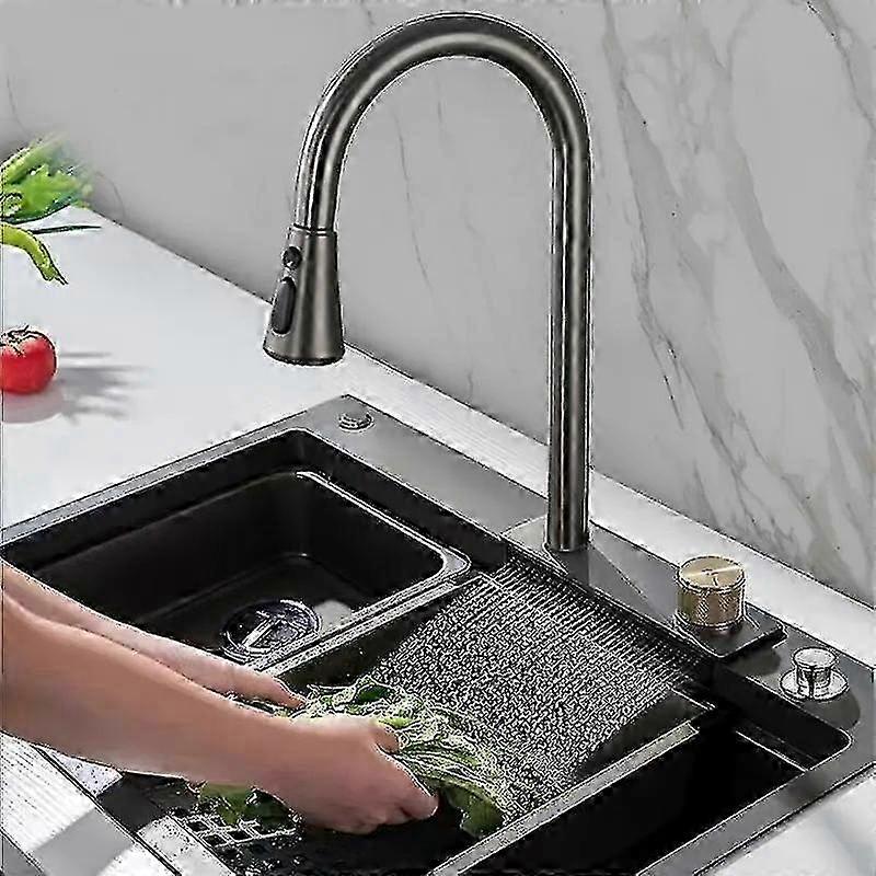 Exquisite New 4 Modes Waterfall Grey Sink Kitchen Faucet Hot Cold Pull Out Mixer Sprayer Head Flying Rain Tap Single Hole Deck Mounted