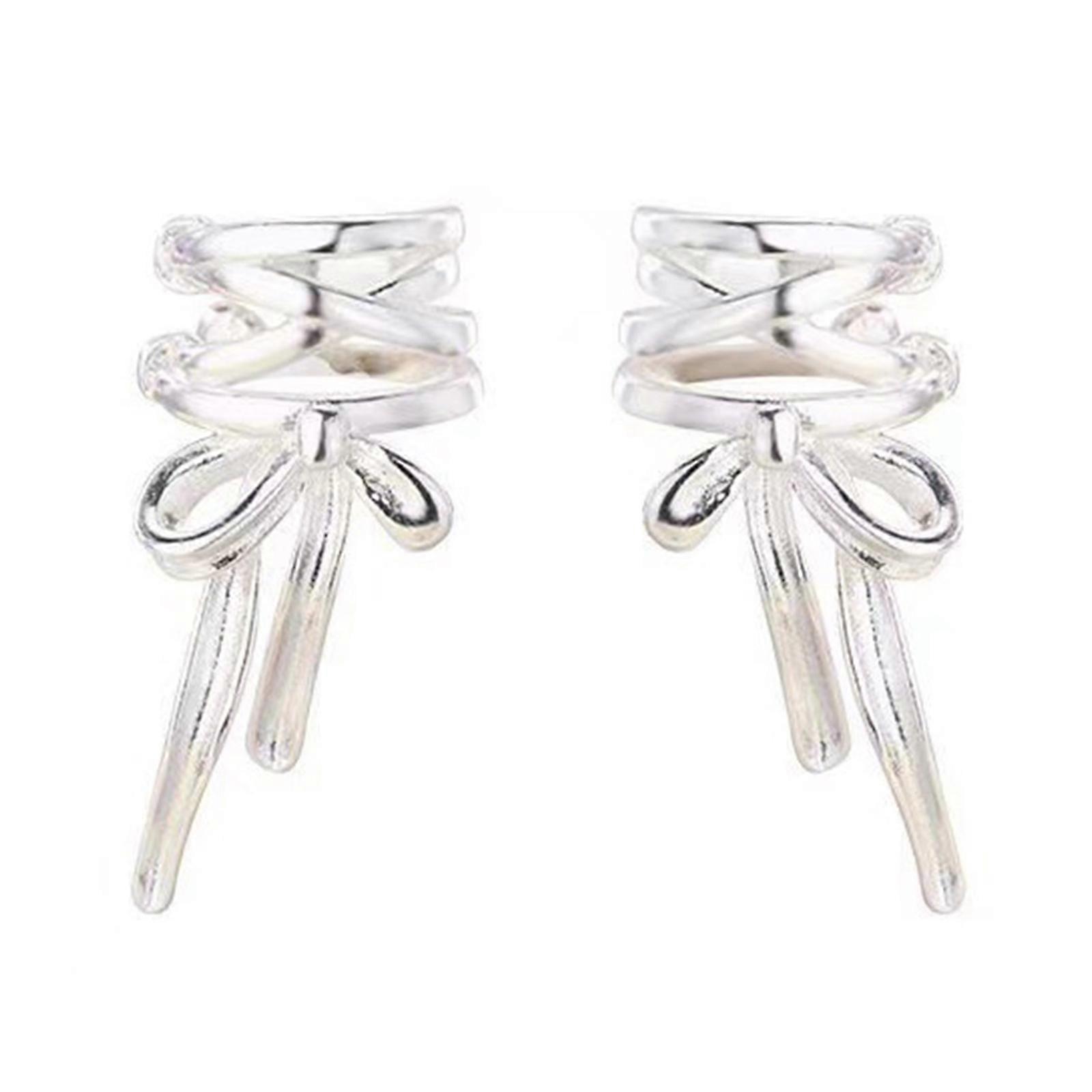 Exquisite Bowknot Ear Cuffs Clip Earrings for Women Fashion Nonpiercing Ear Jewelry Metal Material Ear Clip for Daily