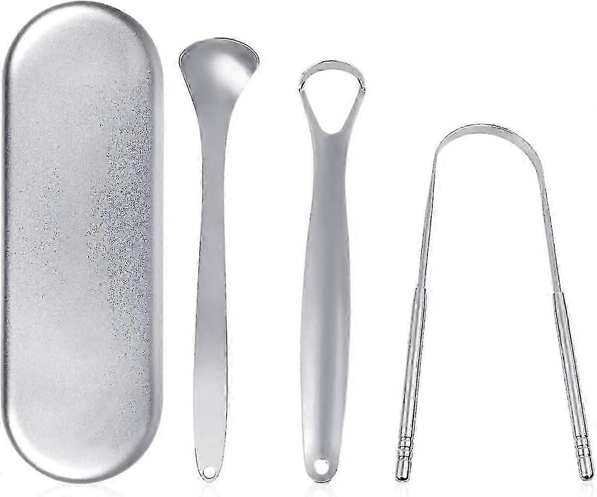 3 Pack Tongue Scraper Set With Exquisite Iron Box, Tongue Scrapers For Adults, Professional Stainless Steel Tongue Cleaner Tongue Car
