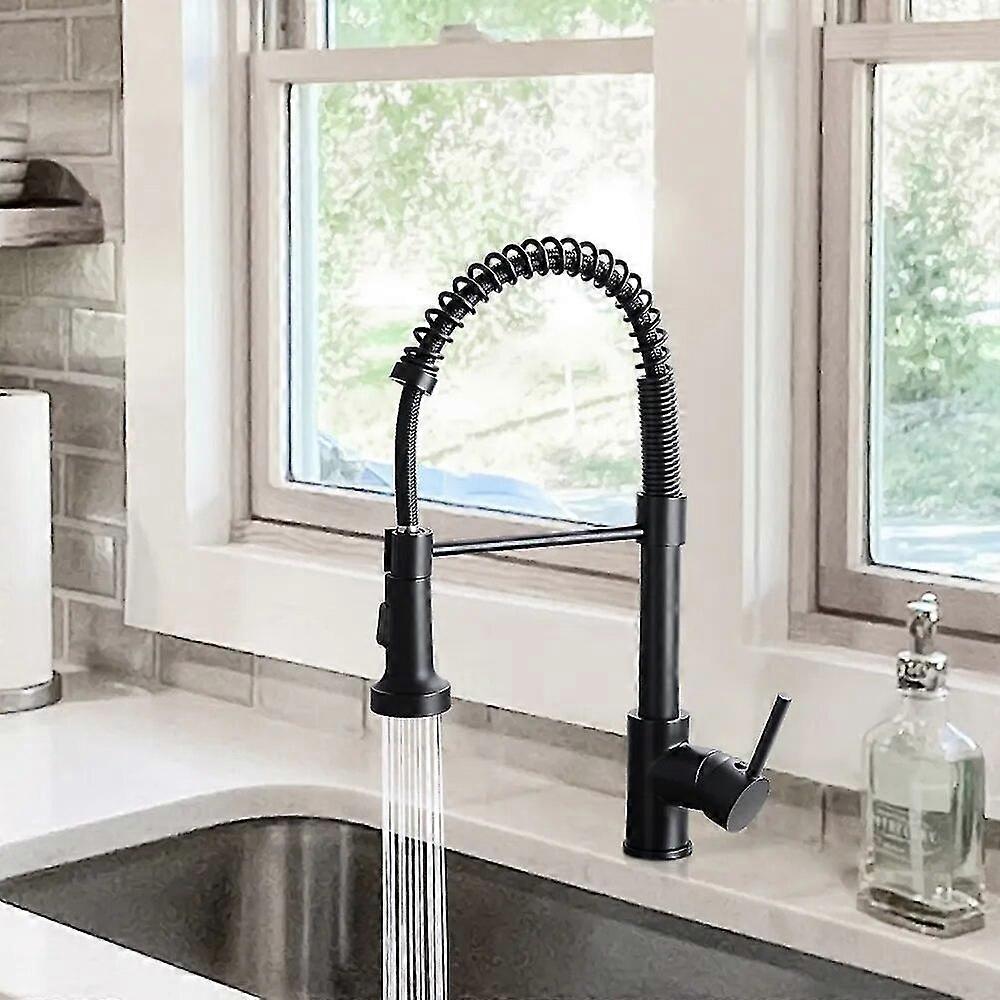 Exquisite Black Kitchen Faucet Deck Mounted Mixer Tap Single Lever Pull Out Spring Spout Mixer Crane Kitchen Sink Hot Cold Taps 360 Degree