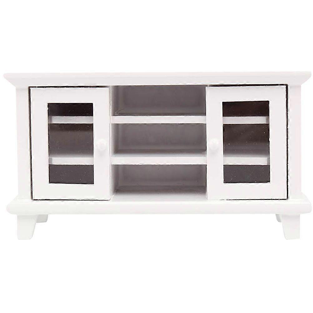 Exquisite 1:12 Doll House Mini Furniture Wooden TV Cabinet Wooden Decoration Mini House Furniture Accessories (White)