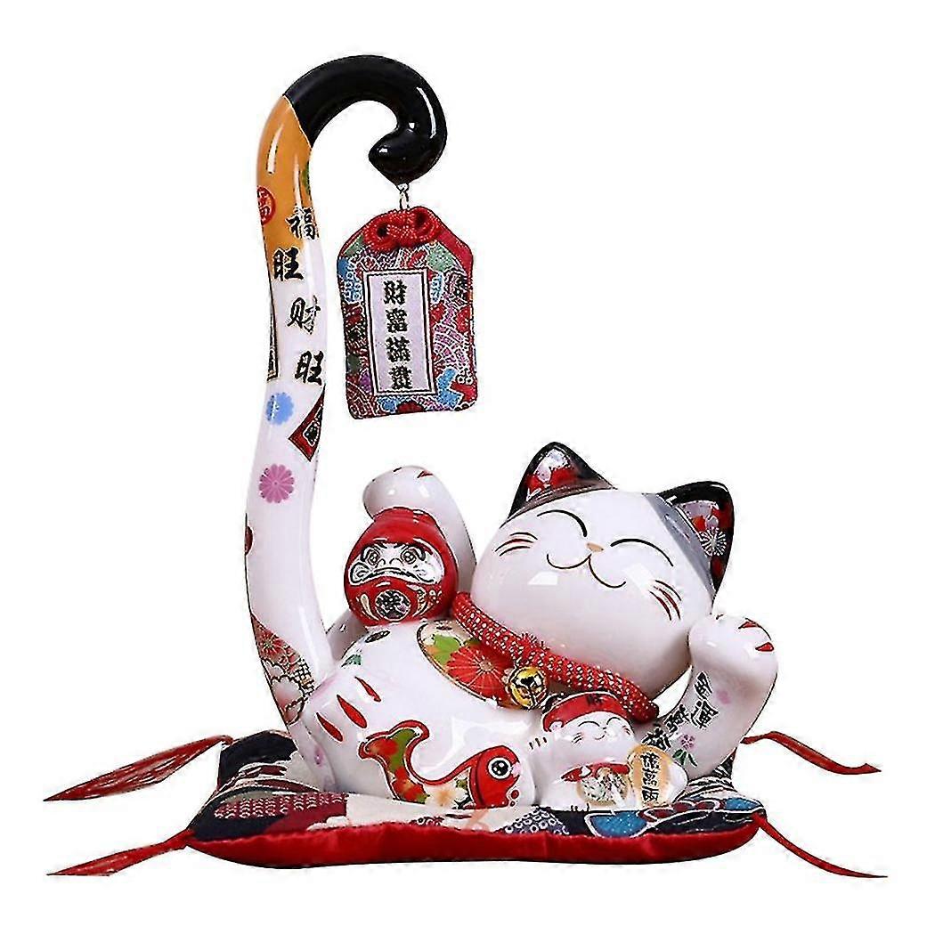 Exquisite Exquisite 8.6 Inch Ceramic Maneki Neko Lucky Cat Money Box Coin Bank Japanese Long Tail Fortune Cat Feng Shui