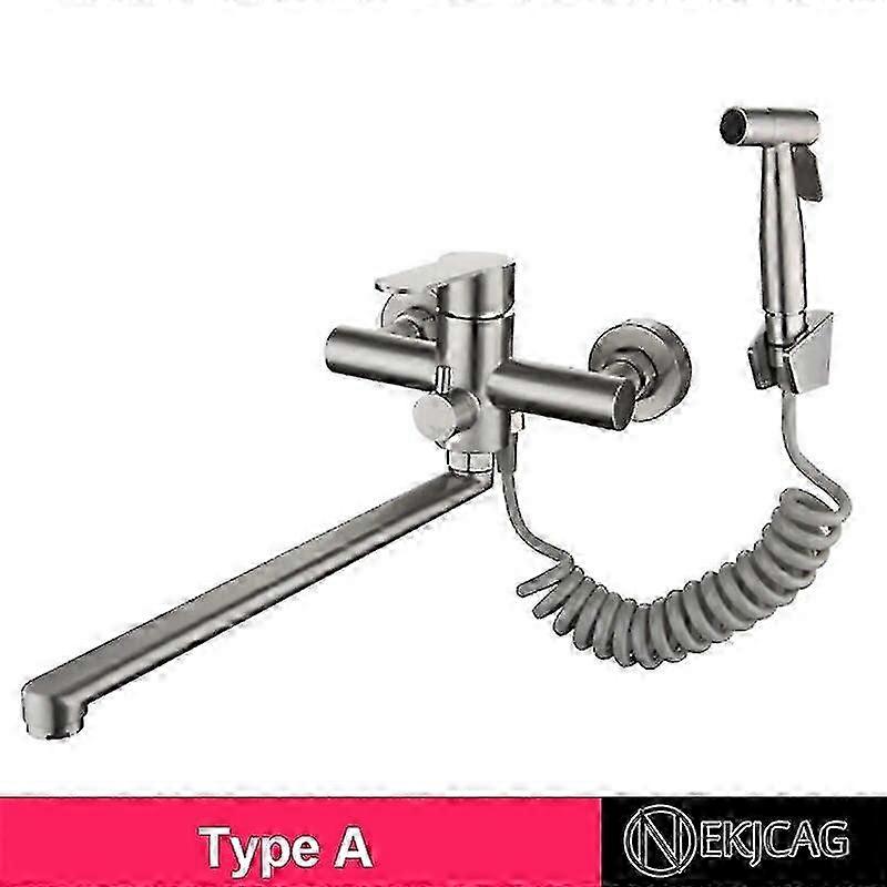 Exquisite Nekjcag Kitchen Stainless Steel Faucet Brushed Extension Faucet Bathroom Mixing Valve Set In-wall Kitchen Crane Wall Mount Taps