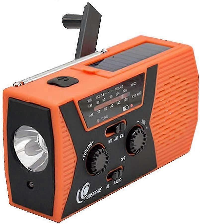 Emergency Solar Radio, Portable Hand Generator AM FM Weather Radio, SOS Alarm Headphone Audio, 2000mAh Power Bank(orange)