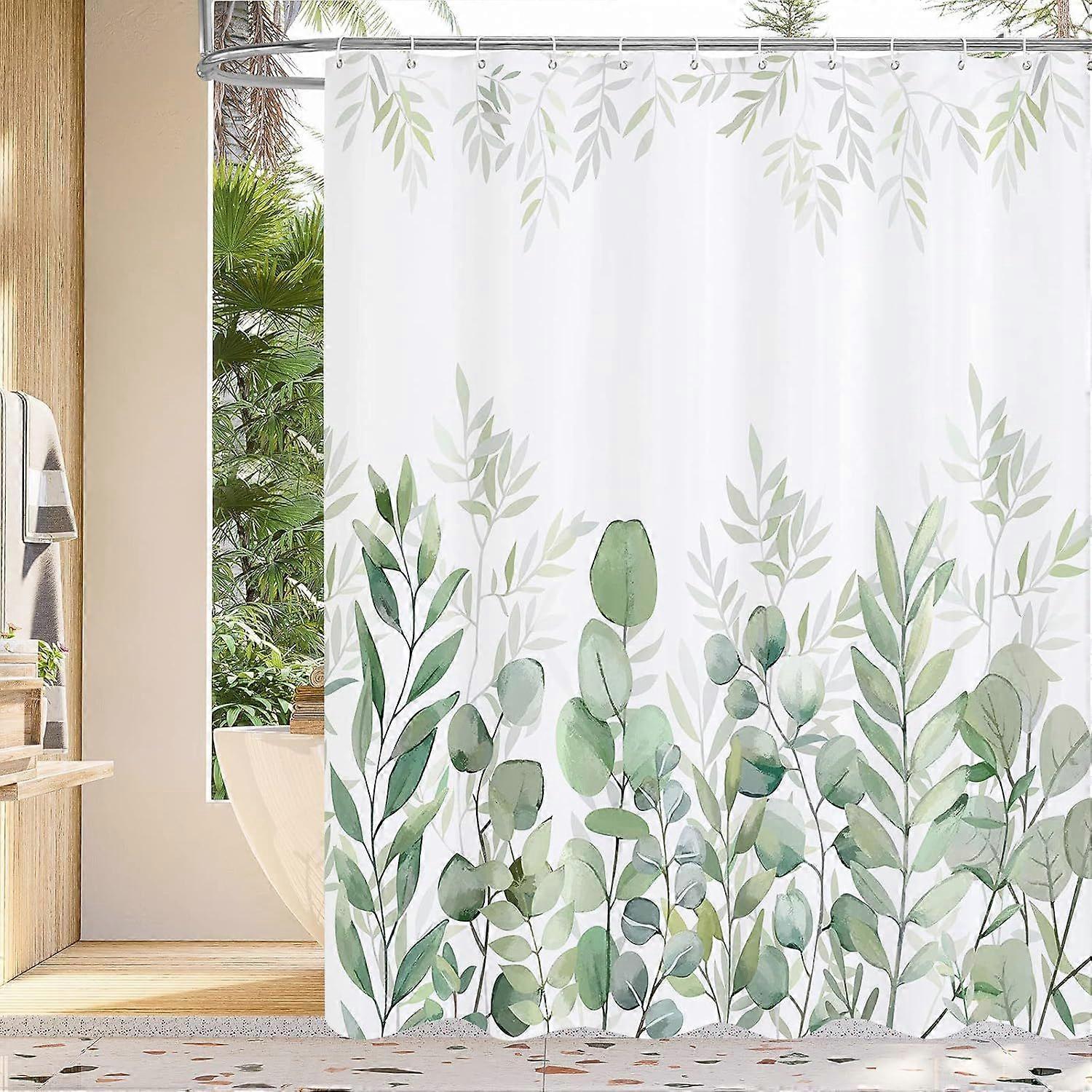 Green Eucalyptus Shower Curtain, Plant Leaves Fabric Cloth Shower Curtains for