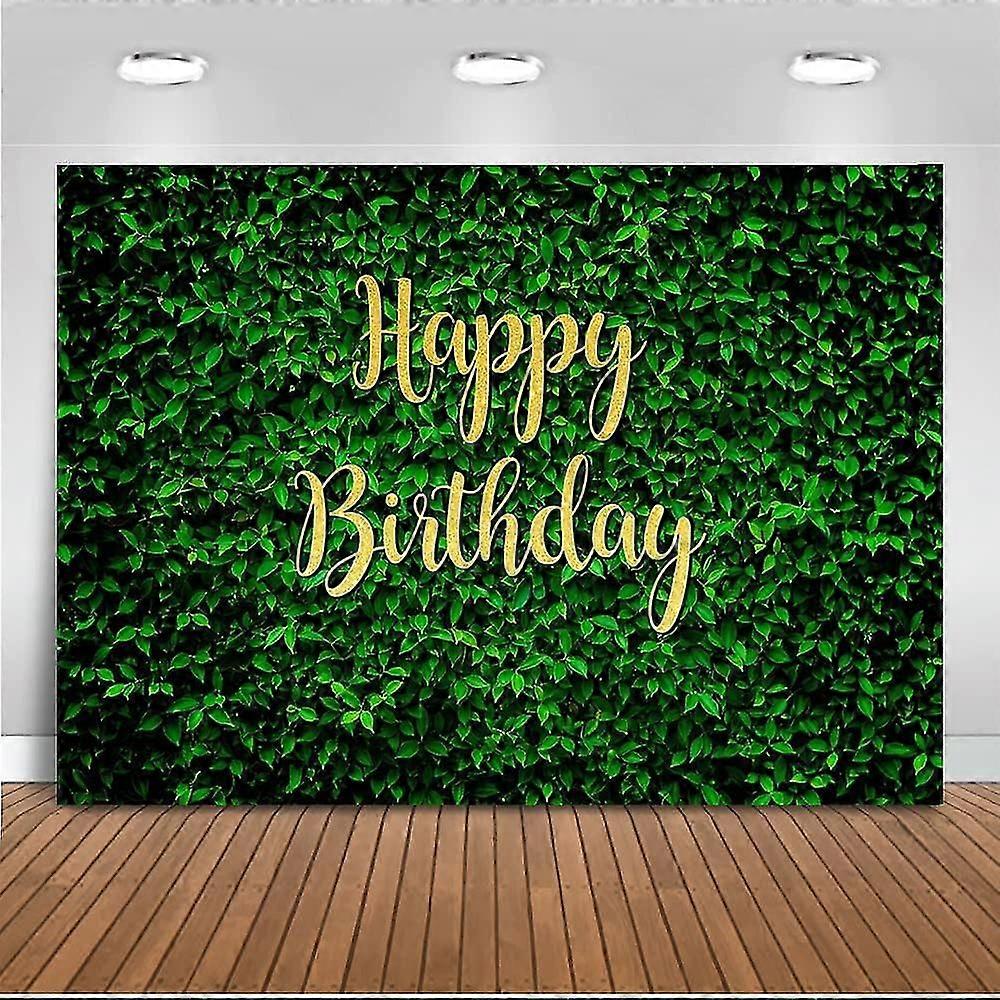 Green Leaves Birthday Backdrop Grass Wall Safari Birthday Party Decorations Banner Photo Booth Backdrops Hedge Birthday Photography Background (7'x5')