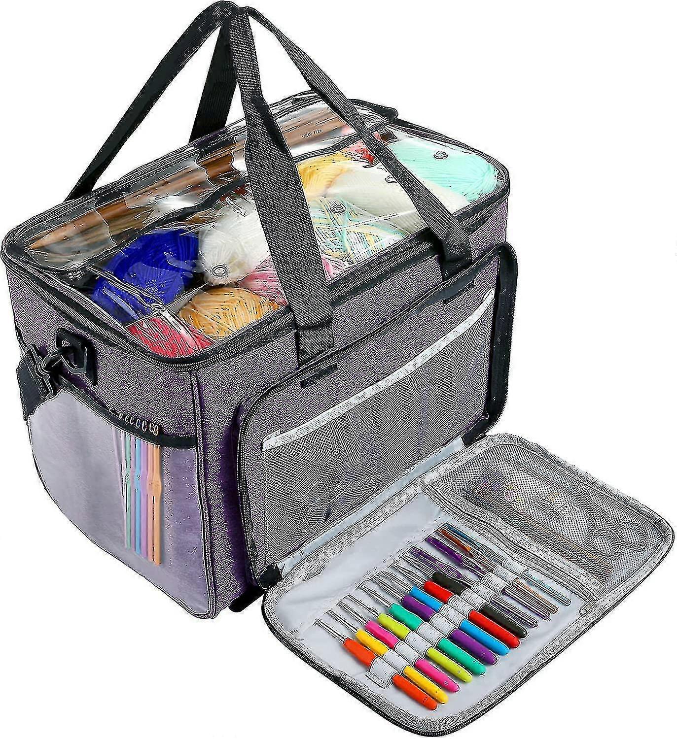 Knitting Bag Yarn Organizer Crochet Tote Organizer, Individual Compartments & High Capacity Yarn Crochet Storage Bag, Great For Storing Crochet Hooks