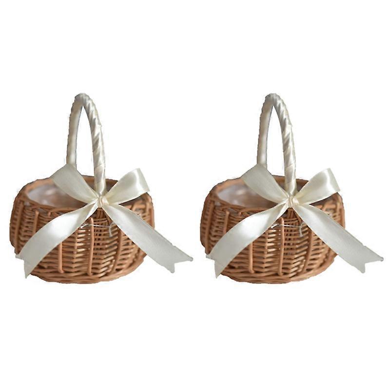 2Pcs Woven Flower Basket Rattan Storage Basket with Bow,Large