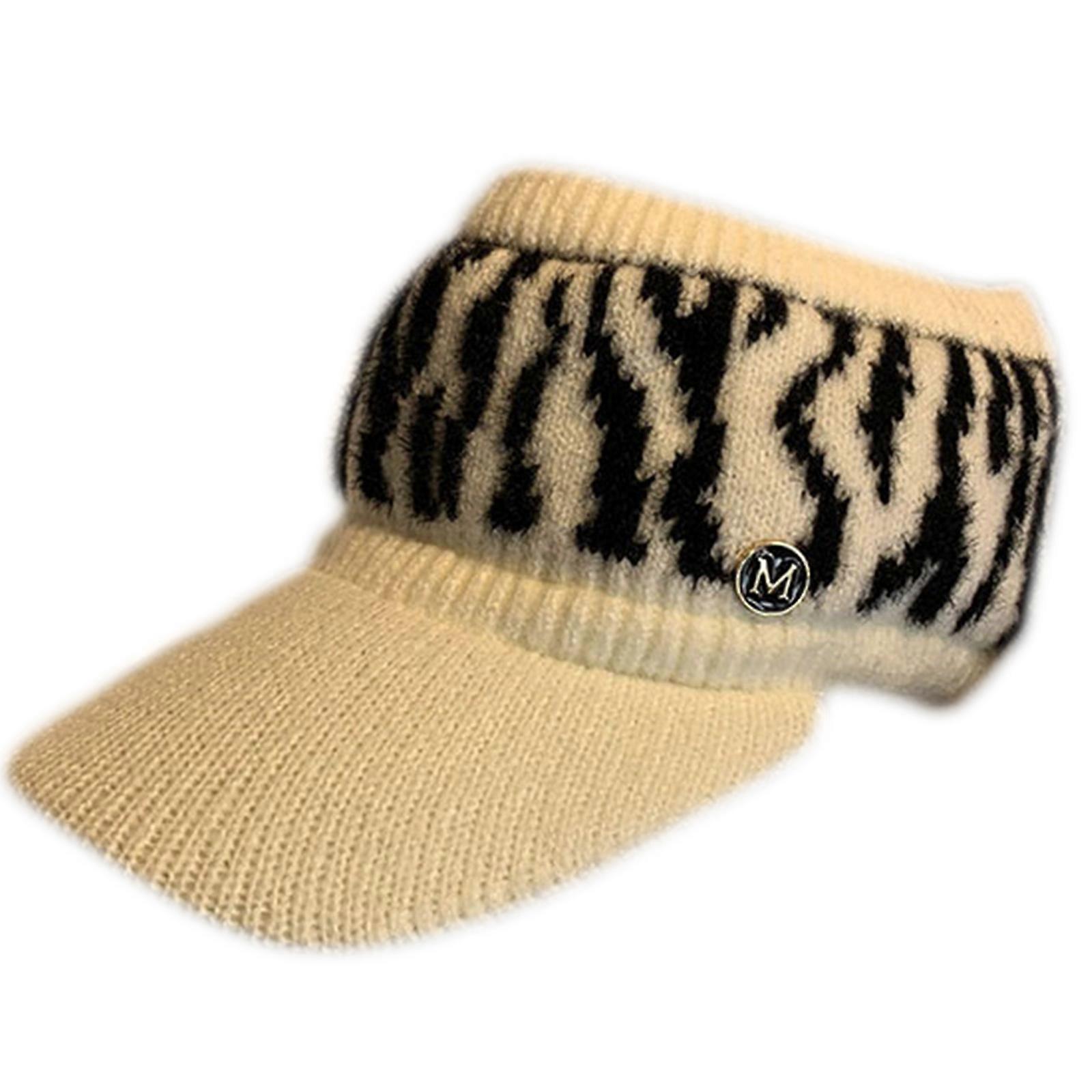 Striped Empty Peaked Cap Knit Baseball Cap Letter for M Duck Tongue Hat for Xmas New Year Thanksgiving Valentine's Day White