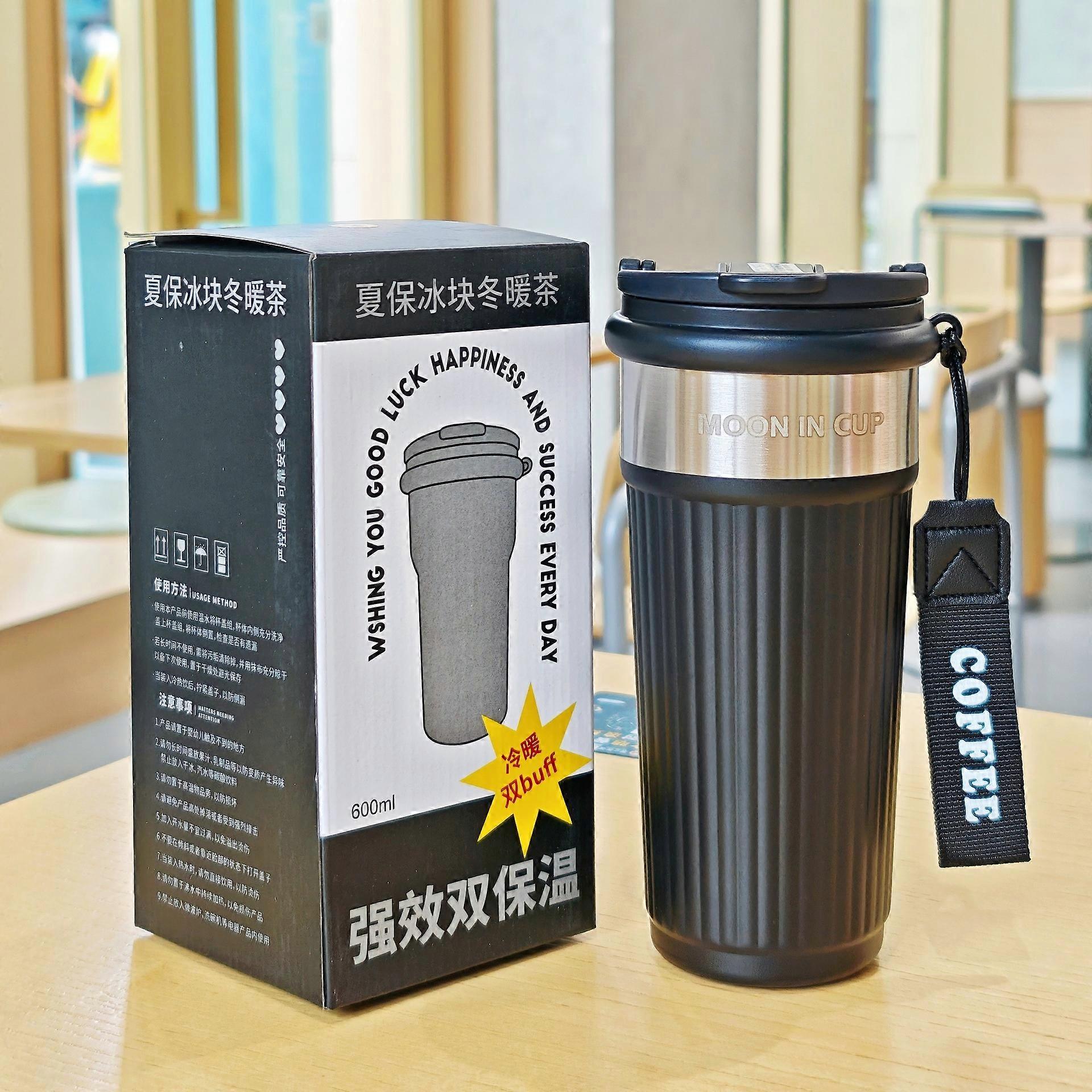 Vertical stripes coffee cup portable stainless steel vacuum water cup double drink cup couple cup