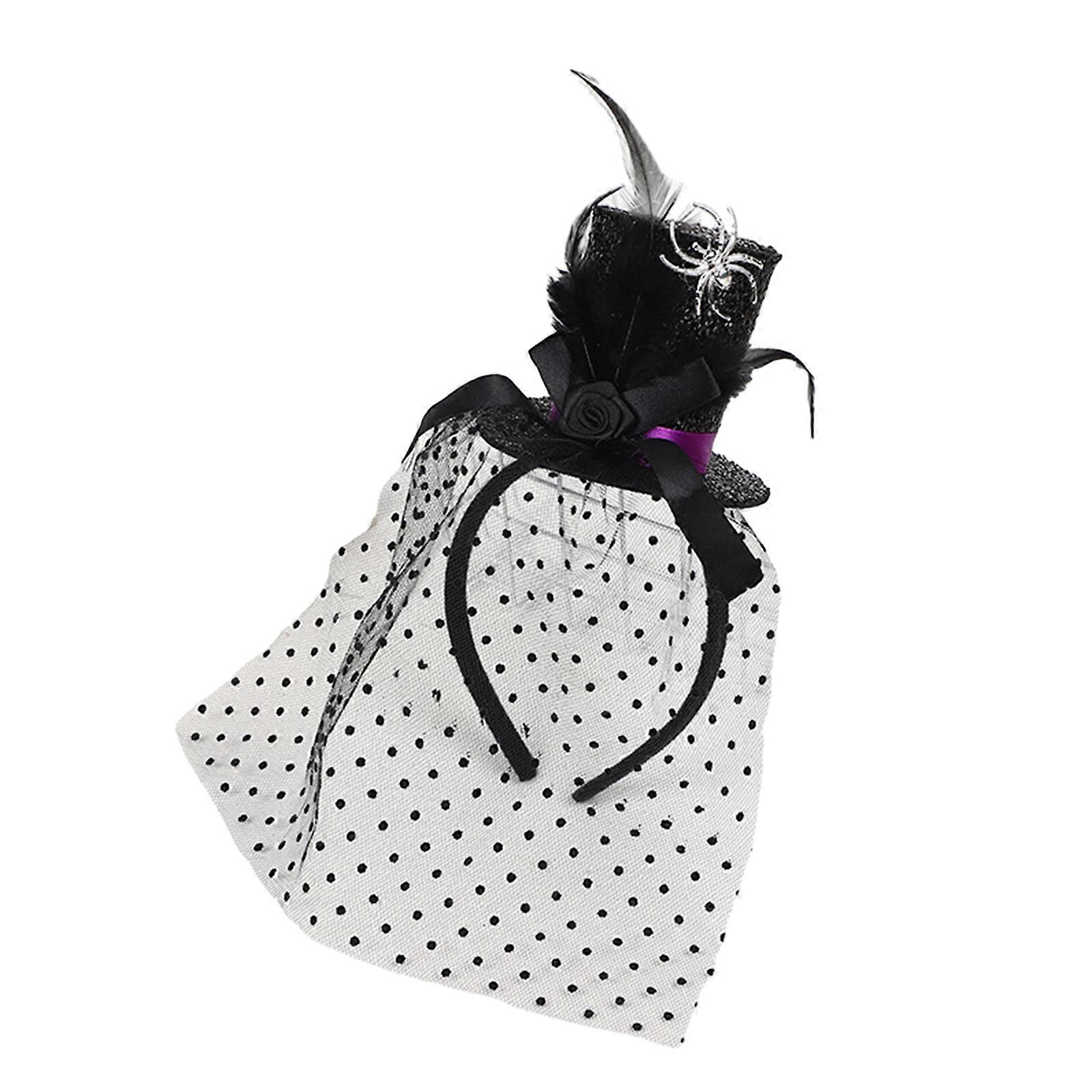 Delicate Headband Elegant Top Hat Spiderweb Decors Hair Hoop with Veil Halloween Party Yarn Top Hat Hairband for Women