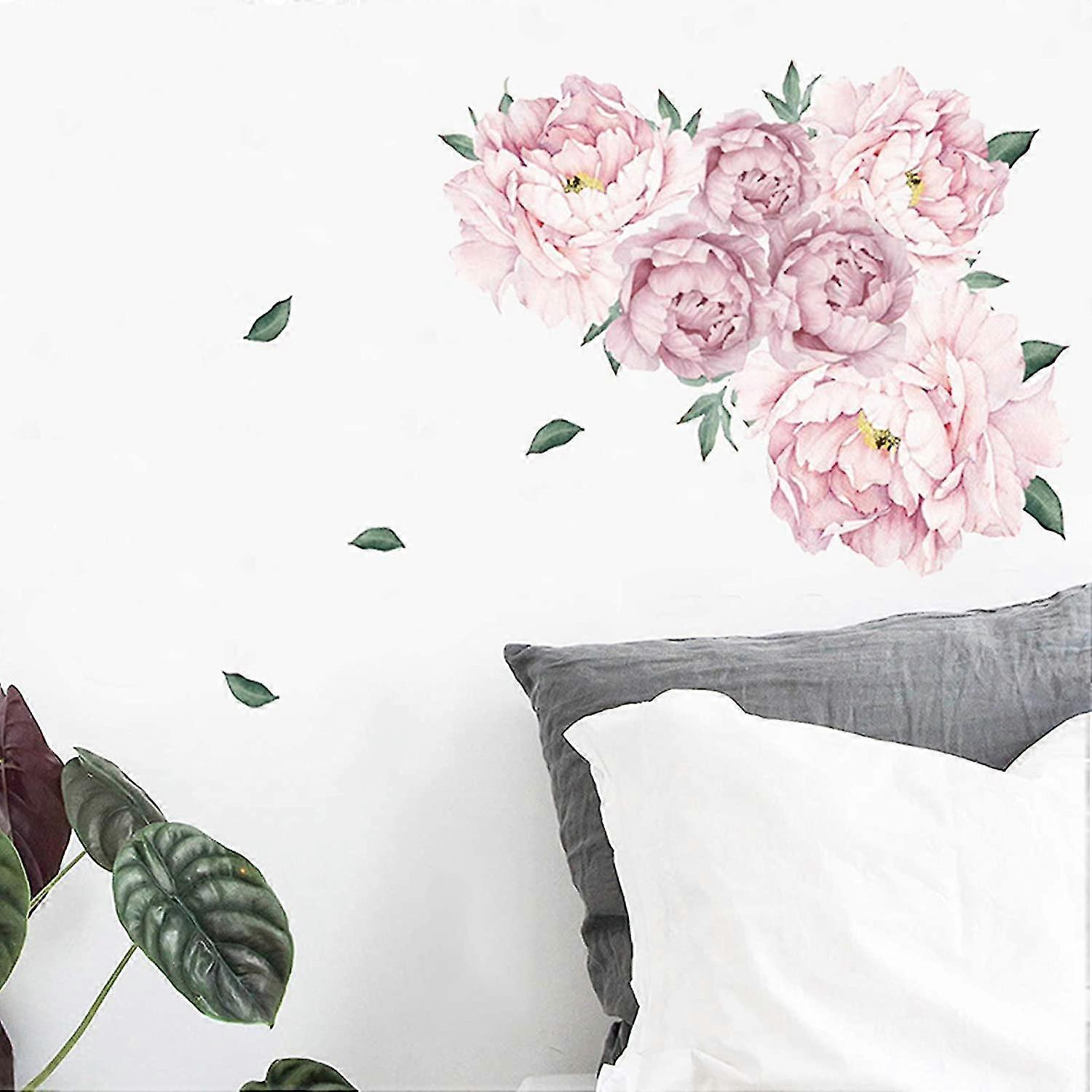 Delicate Peony Wall Decals Flowers Wall Stickers For Living Room, Watercolor Pink Peonies Floral Wall Posters Vinyl Peel And Stick Floral Art Applique