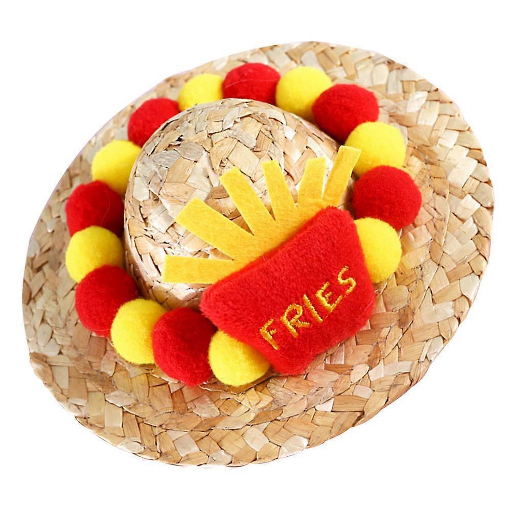 Woven Pet Hat Delicate Pet Woven Hat Bamboo Material Sun Protection For Small Dogs 13x13cm Outdoor Activities 1Set
