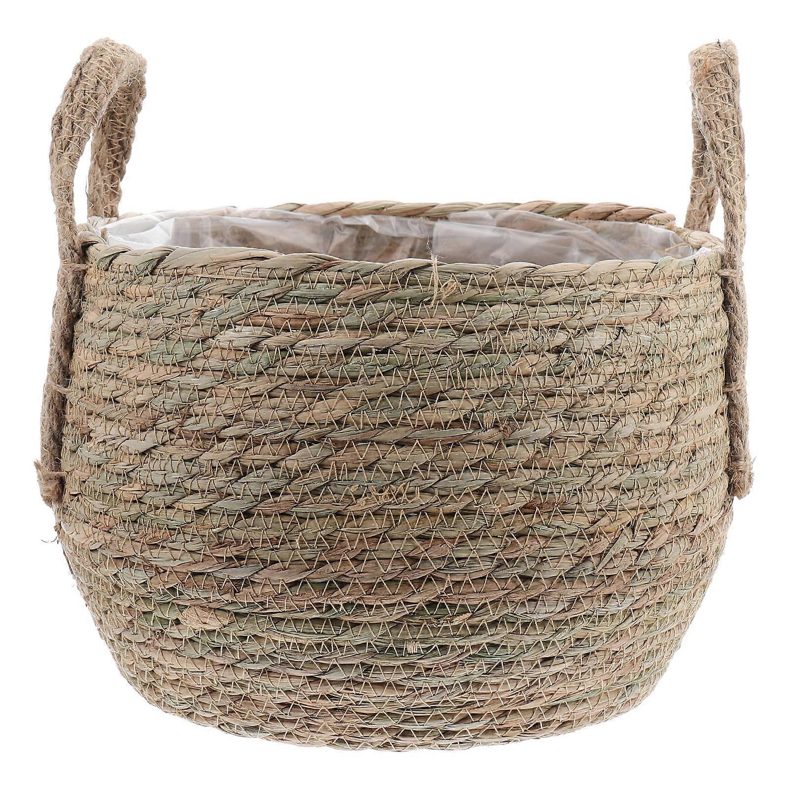 Weaved Plant Basket Creative Green Straw Woven Flower Basket Planter For Laundry Room 24Cm Easy To Clean 1Pack