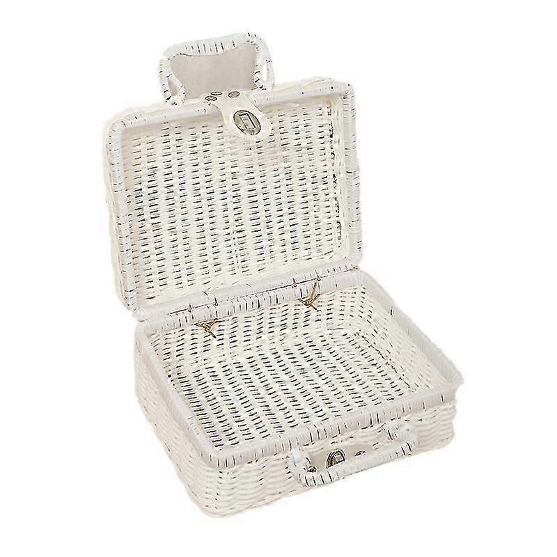 Woven Picnic Box Plastic Rattan Odorless Retro Woven Storage Box with Ring Shaped Handle for Outdoor White S