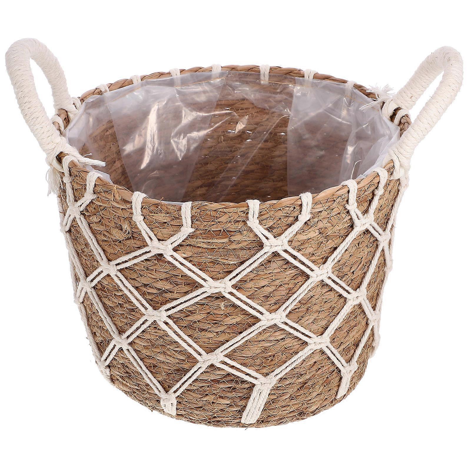 Woven Storage Flower Pot Straw Woven Planter Basket Family Use Round Shape 1Set