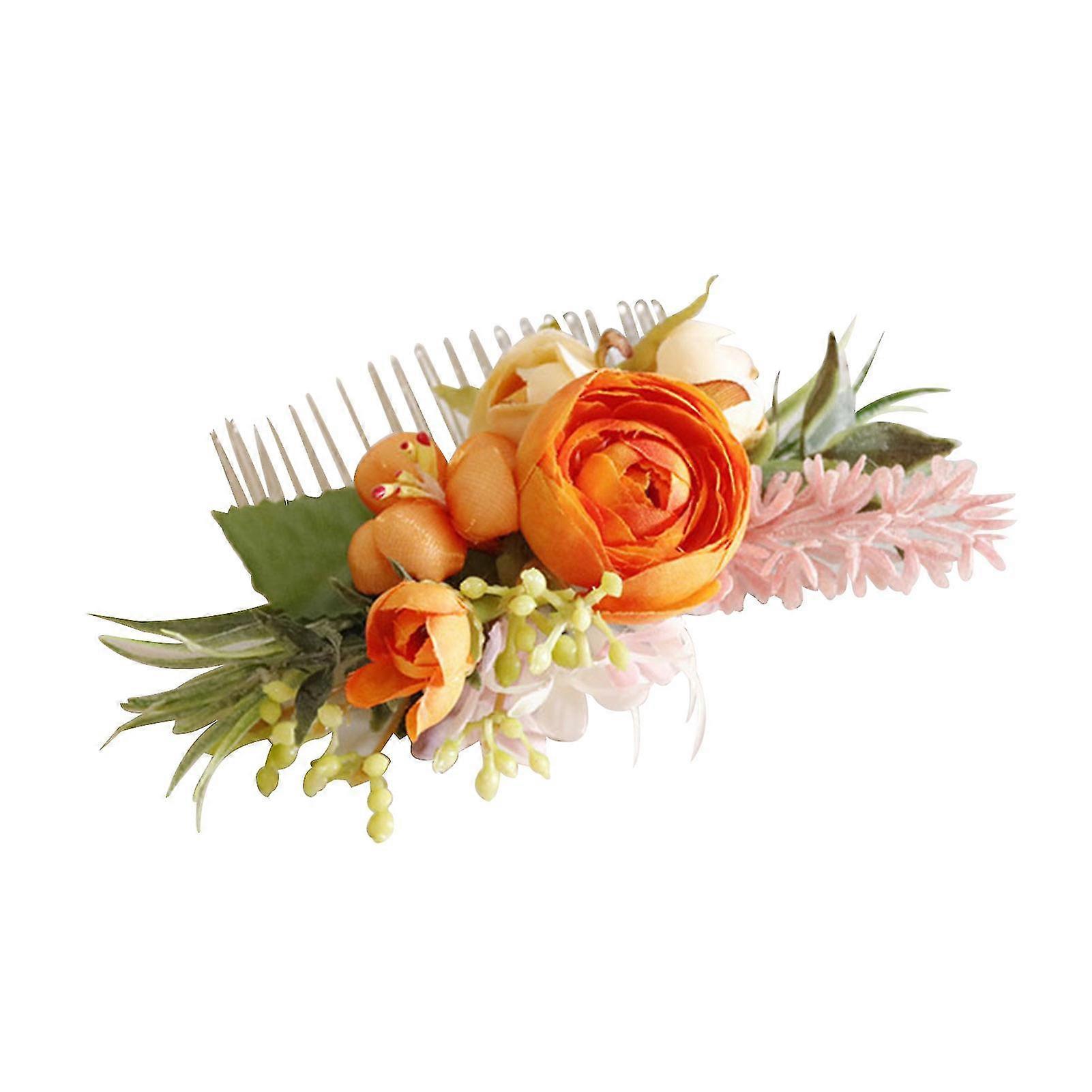 Beautiful Wedding Hair Comb Women Girl Orange Flower Bride Headwear Photo Props