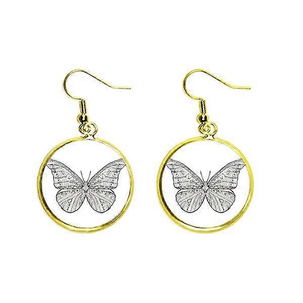Beautiful Butterfly Animal Portrait Sketch Ear Dangle Golden Drop Earring Jewelry Woman