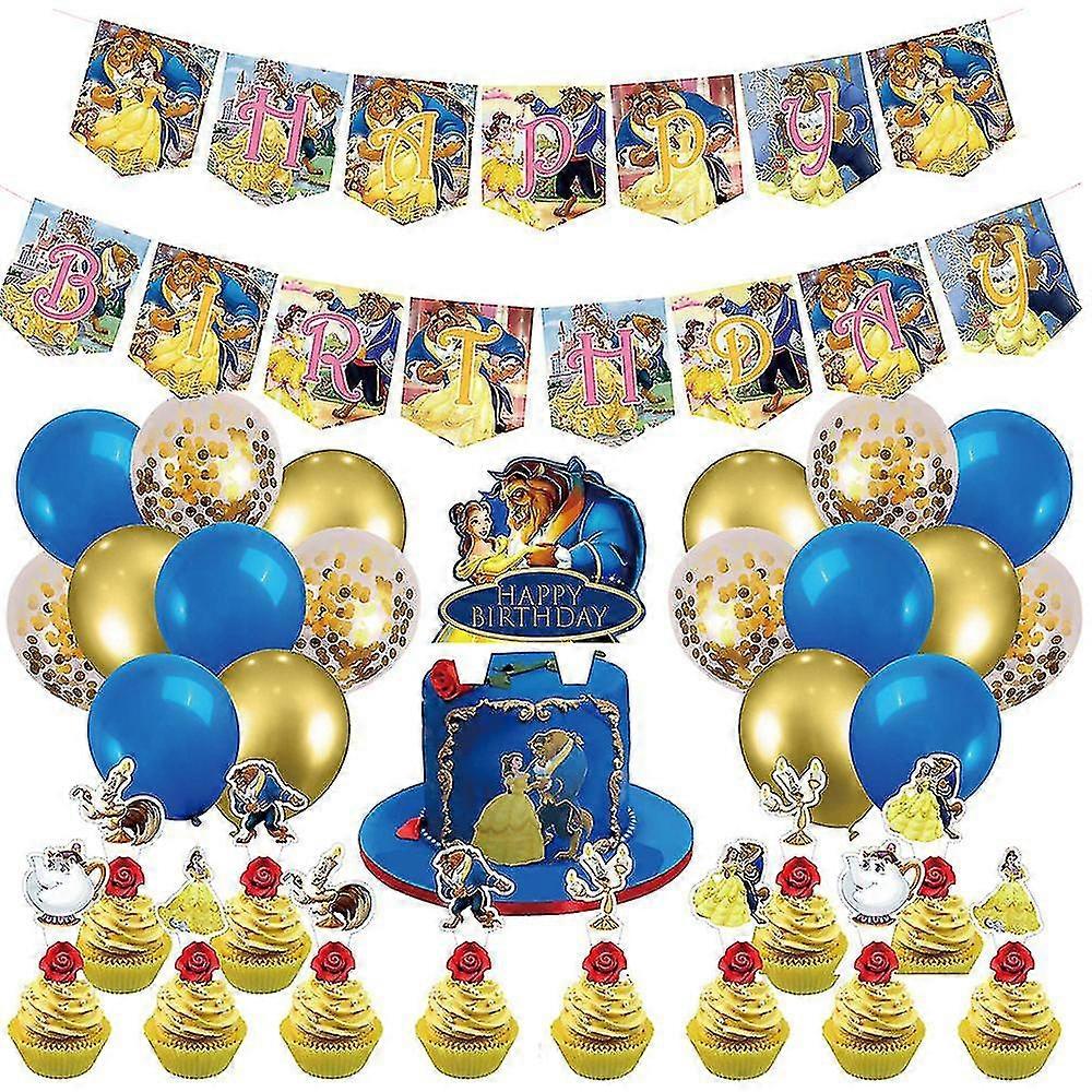 Beauty And The Beast Theme Banners Cake Toppers Balloon Decor Set Birthday Party Supplies