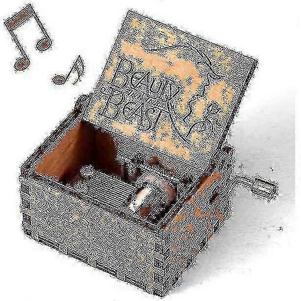 Beauty And The Beast Music Box, Vintage Classic Wood Hand Crank Carved
