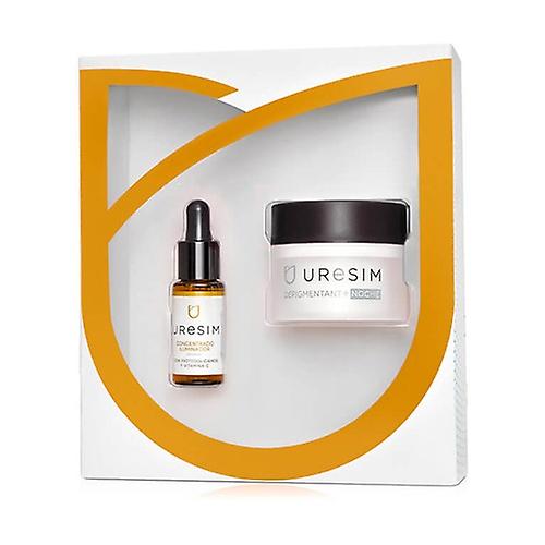 Ten pakiet Uresim składa się z dwóch produktów, które rozjaśniają i ujednolicają koloryt skóry, jednocześnie nadając jej świetlistość. Depigmentacyjny krem na noc Uresim koryguje widoczność ciemnych plam dzięki innowacyjnemu kompleksowi Bicowhite, który rozświetla twarz oraz redukuje zmarszczki i linie mimiczne. Działa głęboko na dwóch poziomach, z jednej strony blokując nadmierną syntezę melaniny, a z drugiej eliminując istniejące wcześniej złogi melaniny. Oparty na technologii Bicosome, jego główny kompleks Bicowhite składa się z 5 zamkniętych w kapsułkach składników aktywnych przeciw wypryskom, które są powoli uwalniane do różnych warstw naskórka, zapewniając długotrwały i skuteczny efekt depigmentacyjny. Uresims Illuminating Concentrate z proteoglikanami i witaminą C pomaga przywrócić blask matowej skórze, przywracając jej witalność. Podobnie sprzyja syntezie kolagenu, wzmacniając jędrność owalu twarzy. Zwalcza oznaki starzenia się skóry, dzięki czemu skóra staje się bardziej napięta i jędrna. Zawiera proteoglikany zbudowane z różnych glikozylowanych struktur białkowych, istotnej części macierzy komórkowej, które pomagają skórze odzyskać nawilżenie i jędrność. Zawiera witaminę C, która wzmacnia tę strukturę, chroniąc ją, ze względu na jej duże zdolności przeciwutleniające. Z drugiej strony witamina C sprzyja mikroprzepływowi krwi w naskórku, poprawiając świetlistość i ujednolicając koloryt. Przechowywać w chłodnym, suchym miejscu.
