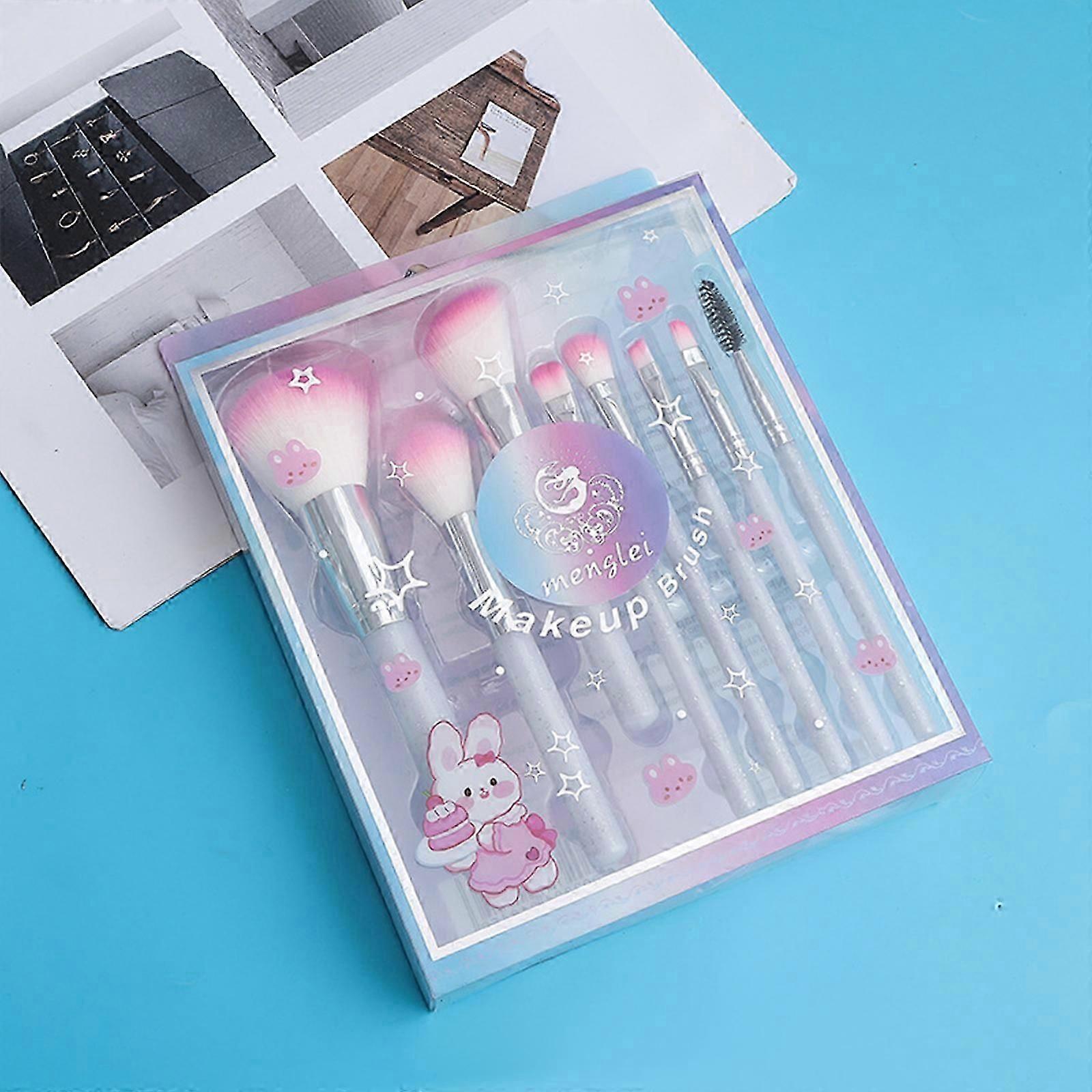 Makeup Brush Set---This set includes 8 different brushes with a unique design that brings a sense of playfulness and cuteness while reminding you to stay innocent and kind. Perfect for applying eyeshadow, powder, blush, eyebrow products, and mascara. Ideal for creating a flawless face and eye makeup. High-Quality Materials--- This makeup brush set is made from high-density, finely textured, soft synthetic fibers that are gentle on the skin. The handles are adorned with cartoon patterns, ensuring a cute and durable appearance. Multi-Functional Brushes--- This Cute makeup brush set comes with 8 different sizes and shapes, suitable for liquid, powder, or cream cosmetics, providing everything you need for perfect makeup. From contouring to bold brows and shimmering eyes, these brushes can do it all. Perfect Gift--- Surprise your loved ones with this gorgeous makeup brush set. It's a great gift for birthdays, Valentine's Day, Christmas, and New Year for your girlfriend, mother, daughter, or significant other. It's perfect for makeup artists and beginners, and the boxed design of the set makes it easy to store and travel with. Steps for Cleaning Makeup Brushes: 1. Wet the bristles in warm water, please do not use hot water as the heat might damage the bristles. 2. Pour some mild cleanser (like baby shampoo) into the water, stir the mixture gently to combine. 3. Only dip the bottom half of the brush into the mixture and swirl the bristles in the water until the brush is fully lathered. Note: Do not fully immerse the whole base of the bristles to avoid water traveling up the handle. 4. Rinse the bristles, squeeze the water out of the bristles gently. 5. Repeat the above steps until all cosmetics are removed. 6. Reshape the bristles, let the brush air-dry, then fluff it with your fingers.