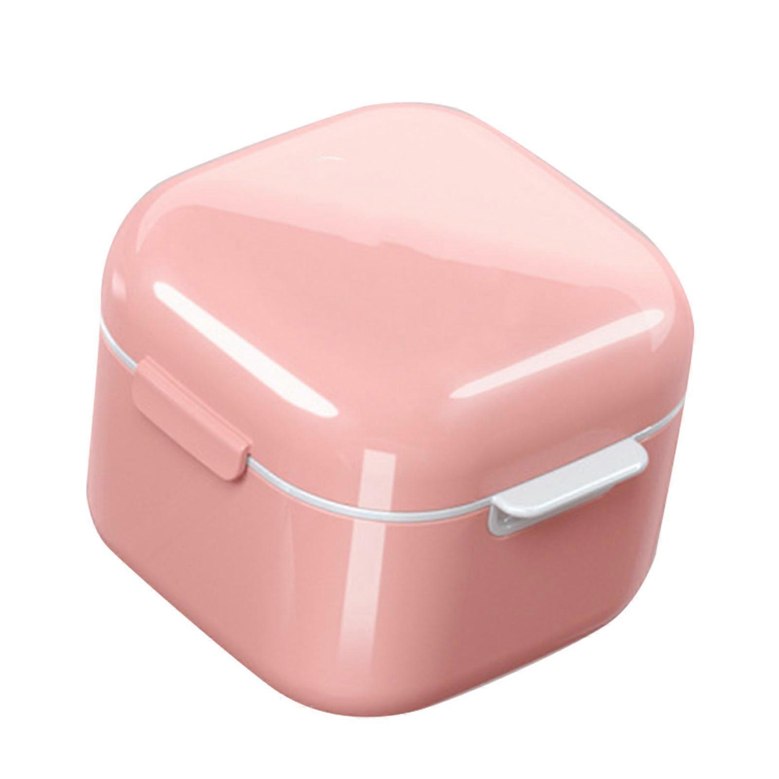 Denture Bath Case Denture Soaking Holder Portable Compact Denture Soak Container Multifunctional False Teeth Storage Case for Home Travel Sakura Red