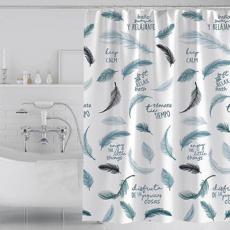 Feather Printed Polyester Waterproof And Mildew Proof No Punching Shower Curtain 180*180cm