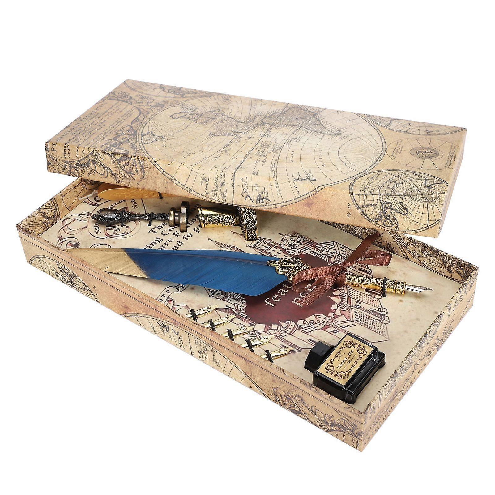 Quill Pen Set Feather Writing Drawing Dip Pen Students Teacher Antique Calligraphy Vintage GiftBlue