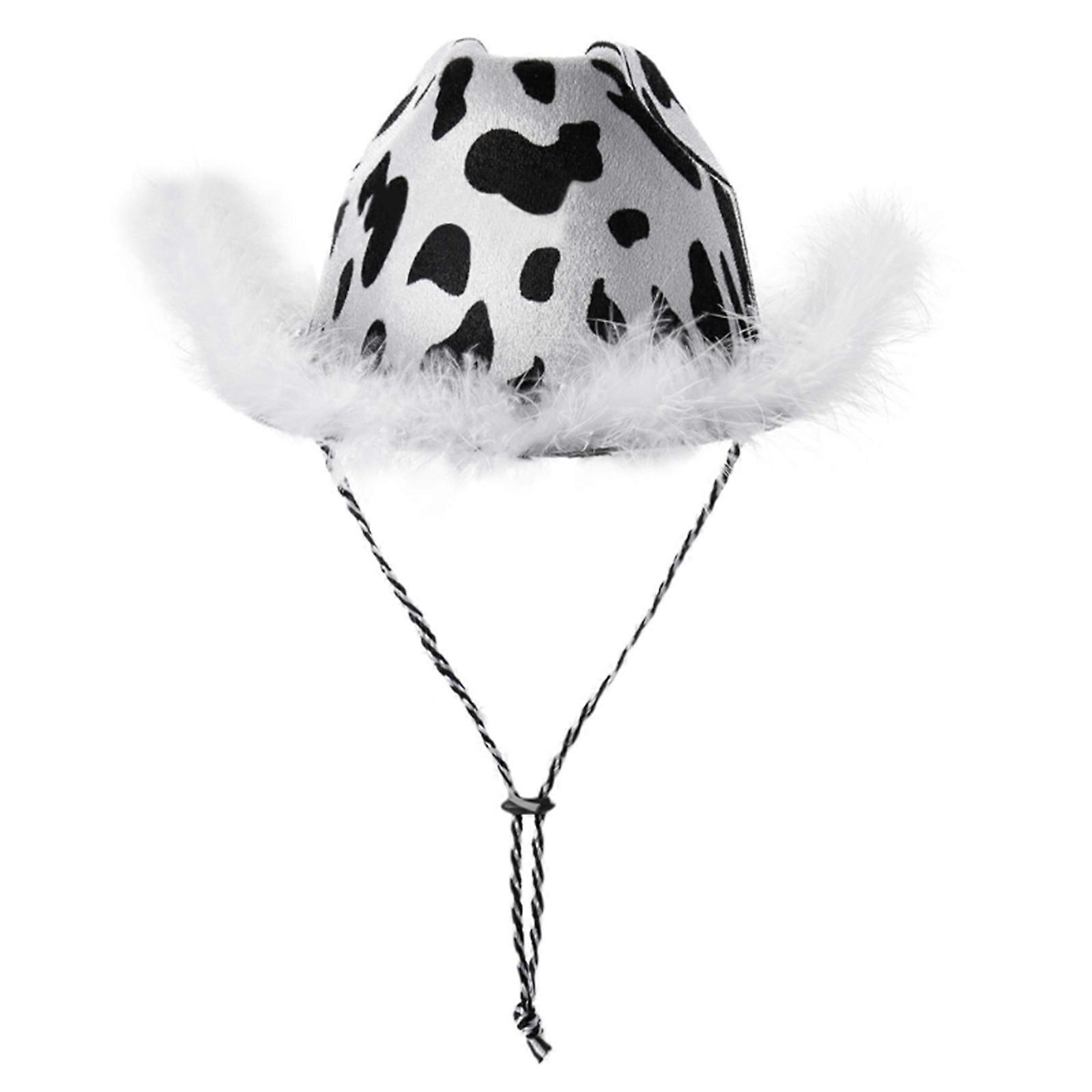 Cow Print Cowboy Hat With Feather Western Party Performance Hat Cowboy Cosplay For Men Cow Print Cowgirl Hat Performance White
