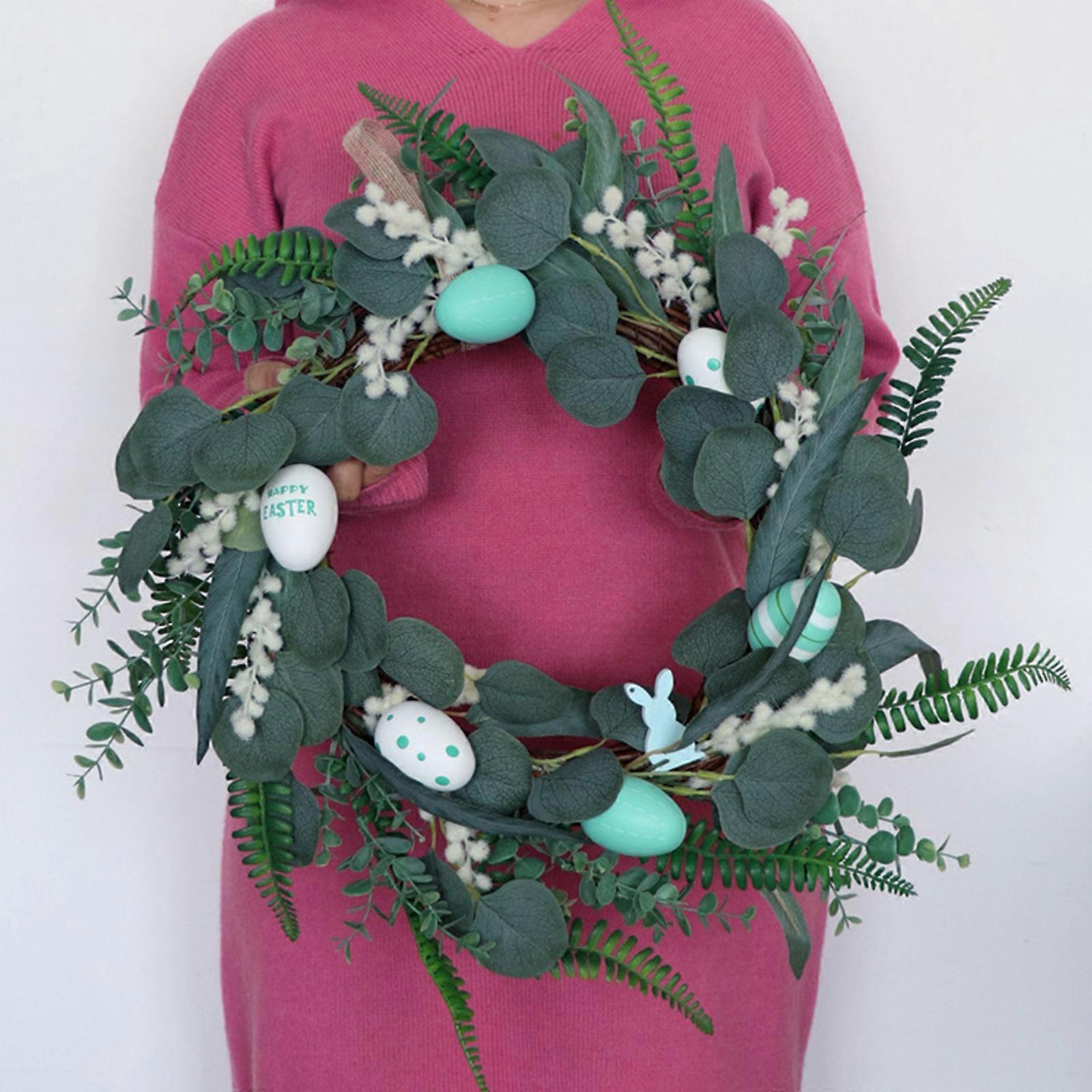 Durable Green Easter Wreath, 19.7'', Lifelike Egg Design