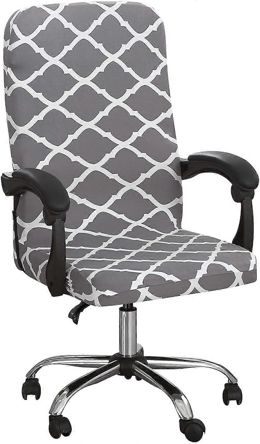 Office Chair Cover with Durable Zipper, Printed Washable Stretch Office Chair Cover, High Back Computer Chair Cover, Office Chair Seat Cover (Gray Dia